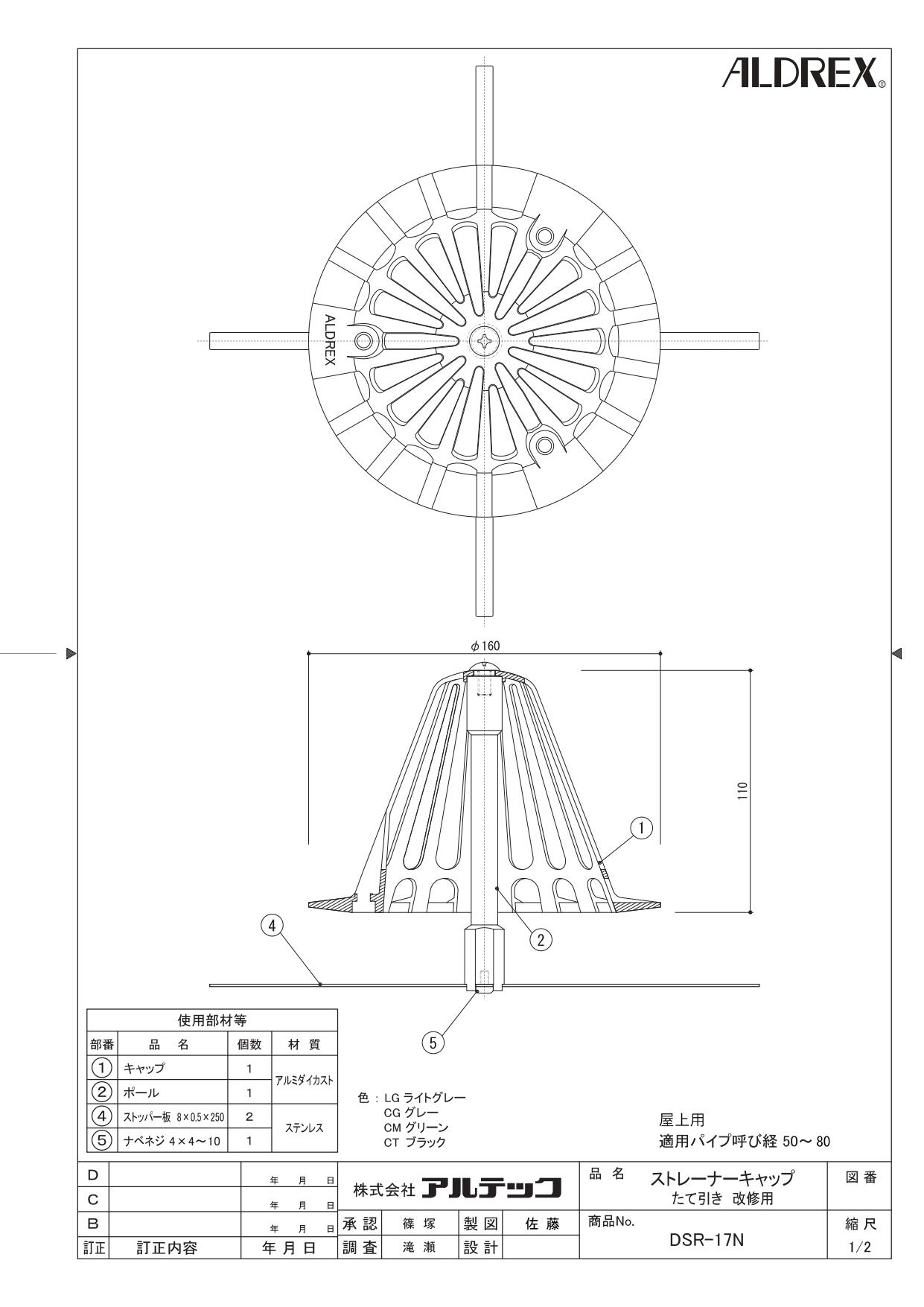 ストレーナーキャップは、実際にご使用になる改修用ドレインや排水管の内径で選択してください。